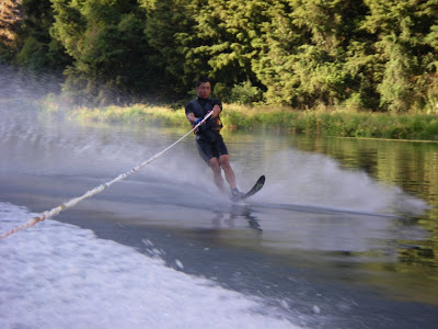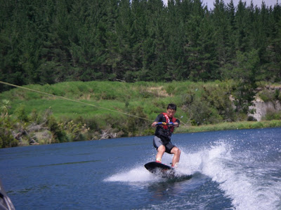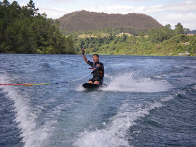 Over anniversary weekend (end of Jan for you non-JAFAs, although I'm still a fake JAFA btw) I went down to Orakei-Korako, near Taupo to hone my waterskiing skills. Well it was a bit more than just waterskiing - did almost everything that you can tow behind a skiboat! I had an awesome time, definitely getting better and the conditions were great. It's a beautiful spot but apparently won't be available to the general public any longer because of private development carving up the land around it. Anyway, this is me on the single ski: