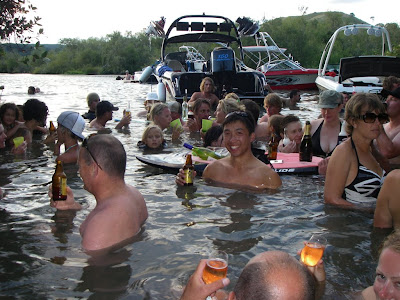Once the inner speed junkie had been satisfied we headed to a place called "Paradise" (yes, its actually called that). I've never been anywhere like this before. There is this inlet off the river where all this hot thermal water runs in and it's like being in a massive spa pool. Quite a few people were there (it's easiest to get there by boat, as you can see below) socialising and drinking with music pumping out of the wakeboard boats after dark, it felt strangely similar to a nightclub!!