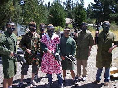The Stag afternoon (I can't really call it a Stag night since it finished around 9:30 and the wedding was the next day) consisted of some good old manly paintball. I managed to find Mark some lovely attire to wear.