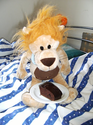 Once the cake was baked I shared it around with myself, Katie and Saffron my lion buddy. He commented on how fantastic it was which was quite surprising because lions generally aren't into Vegan food.
