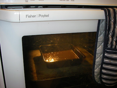 I googled the mixture and then put it all together in a pan. Either I didnt have enough mixture, or the pan was too small because it ended up being a pretty shallow cake. I'll blame the pan, because I wasn't responsible for creating the pan and it can't defend itself...